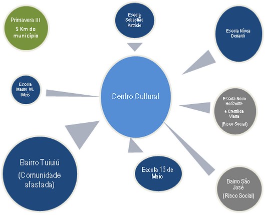 Esse ano, com a vinda do Ponto de Cultura, ficamos com o maior movimento teatral de base de Mato Grosso. O projeto já existente foi amplificado e estendido à vários locais da cidade na busca por espaço, apoio e facilitando acesso. São quase quinhentas pessoas, entre alunos, atores, professores e funcionários envolvidos em fomentar base e formar platéia.